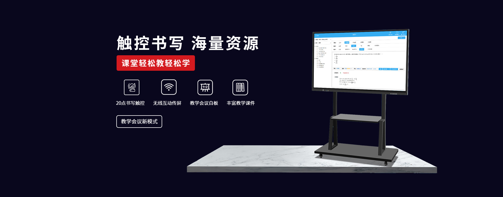 〔教育智慧黑板〕 是新一代教學顯示設備,具有高清顯示、高精度觸摸操作應用,黑板書寫教學功能與一身;內置安卓、windows系統,可滿足教學不同的應用軟件使用;純平面書寫黑板,適應粉筆,無塵粉筆、水性粉筆書寫,適合不同環(huán)境應用;觸摸切換書寫黑板與屏幕顯示,可讓老師快速進行教學應用切換;純平面外觀,解決傳統推拉黑板的笨重,復雜的結構特點,大大提升了教師授課的體驗感和演示效果。